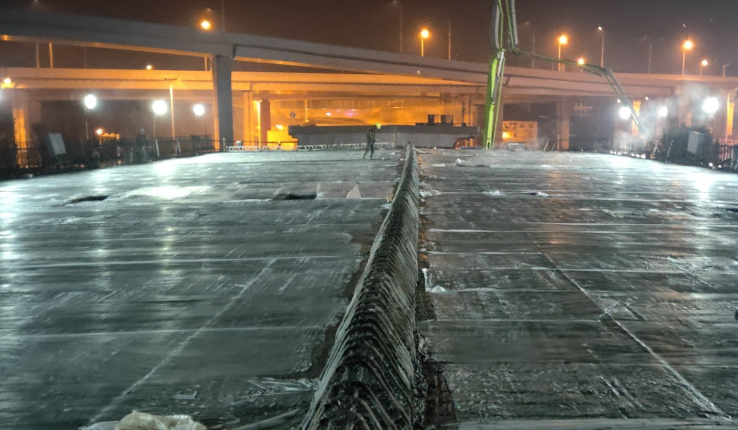 16日下午3時至次日下午2時37分,澆筑Y匝道,完成澆筑量1126m3。