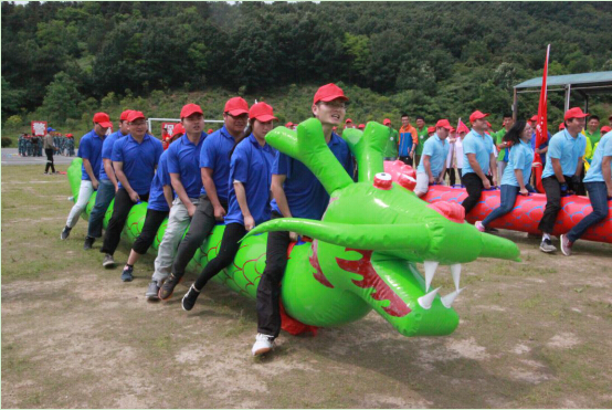 在拓展活動開始前的團隊展示環節,“雄鷹隊”隊員們高聲吶喊的“雄鷹展翅、步步高升、天降大任、創世輝煌”響亮口號便喊出了天創市政的精氣神,根據勵志歌曲《步步高》改編的隊歌更是唱出了天創人敢為人先的強大氣勢,為團隊在接下來三個拓展項目中的精彩表現打響了開頭炮。在“挑戰150”項目中,“雄鷹隊”隊員們積極出謀劃策、協商戰術,經過合理分工、有序安排和緊湊組織,最終僅用時1分41秒便順利完成“集體跳蠅”、“不倒森林”、“同甘共苦”等5個小項目的比拼任務。隨后,“雄鷹隊”巧妙安排男、女參賽隊員,并以最快速度調轉“龍頭”,以54秒的成績出色完成“陸地龍舟”項目,在10支隊伍中用時最短。最后一個項目是“四方拔河”,“雄鷹隊”隊員們面對“勁敵”毫不畏懼,卯足干勁,在聲嘶力竭的“加油”助威聲中咬牙堅持,在經歷“復活賽”后獲得該項目第二名。