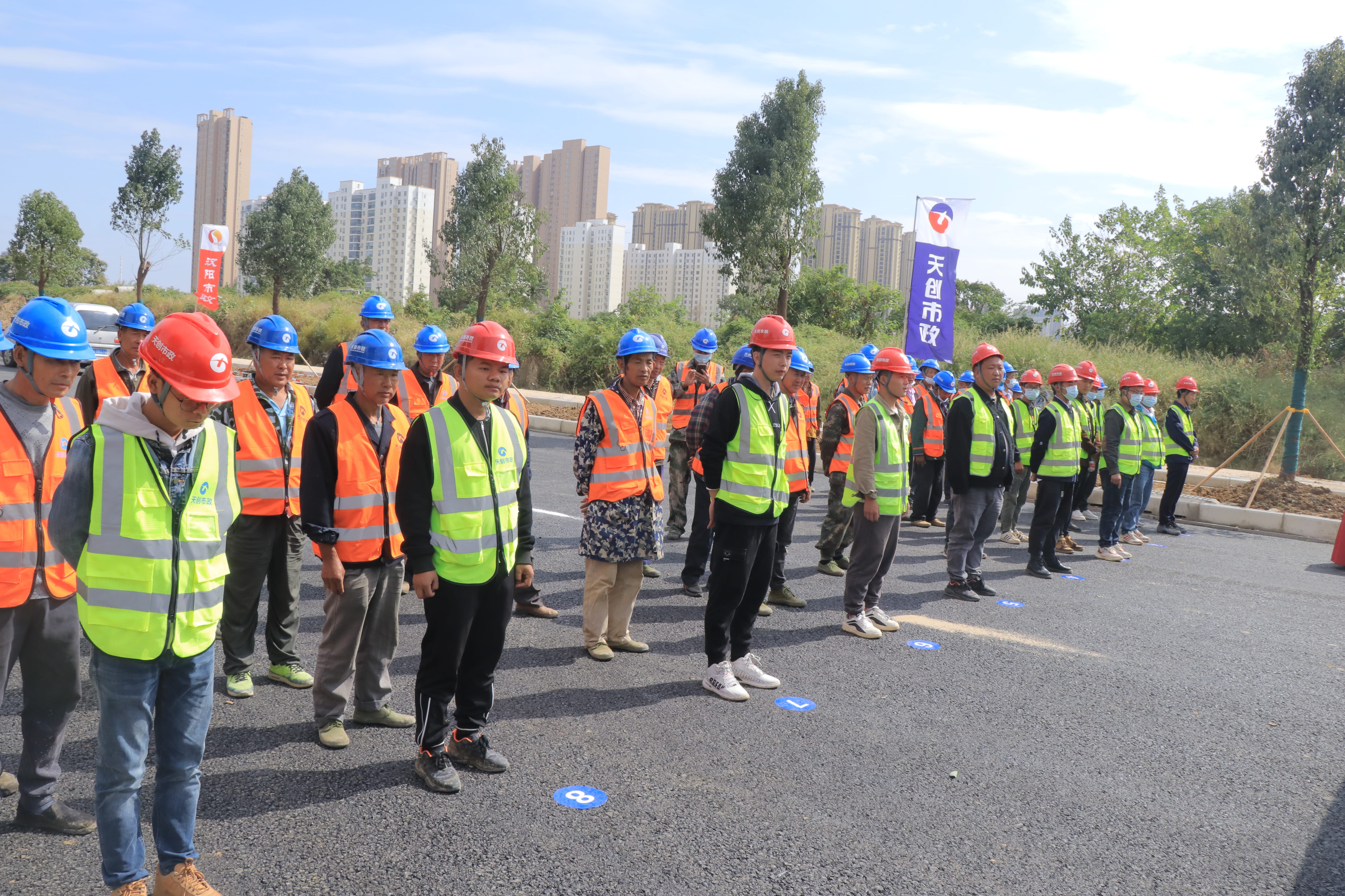 道路檢查井周邊下沉、開裂、破損問題一直是市政工程的一大頑疾。為保證道路正常使用年限,保障道路行車平穩舒適,提高施工現場管理人員及各勞務班組施工水平,提升現場施工質量,10月11號上午,天創市政在東西湖區創智路舉辦檢查井提升技能大比武活動,集團質安部部長助理程振東、天創市政黨支部副書記肖三秀、總經理助理曾君、質安部、各項目部項目經理、施工主管、施工員、勞務隊隊長共計70余人參加活動。