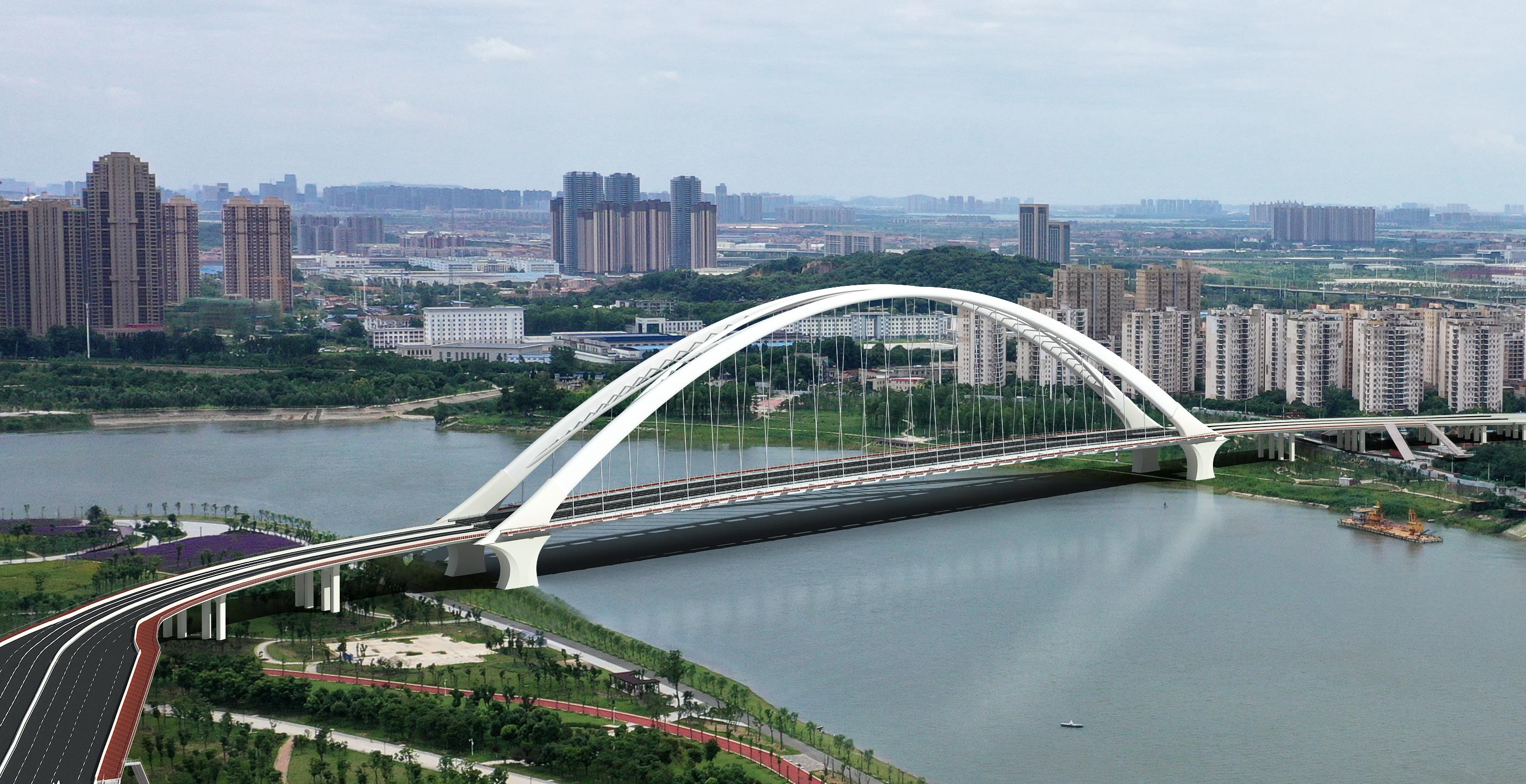 作為“十四五”期間武漢計劃建設的過江通道之一,項目西起于本項目西起于黃金口大道什湖路,東止于古田一路長云路口,線路長度約4123米,其中高架橋約2317米(含跨漢江主橋855米),引道188米,地面主線1618米,地面輔路1829米,道路紅線寬40~55米。主要建設內容包括道路、橋梁、排水、交通、綠化、照明及相關配套工程等。