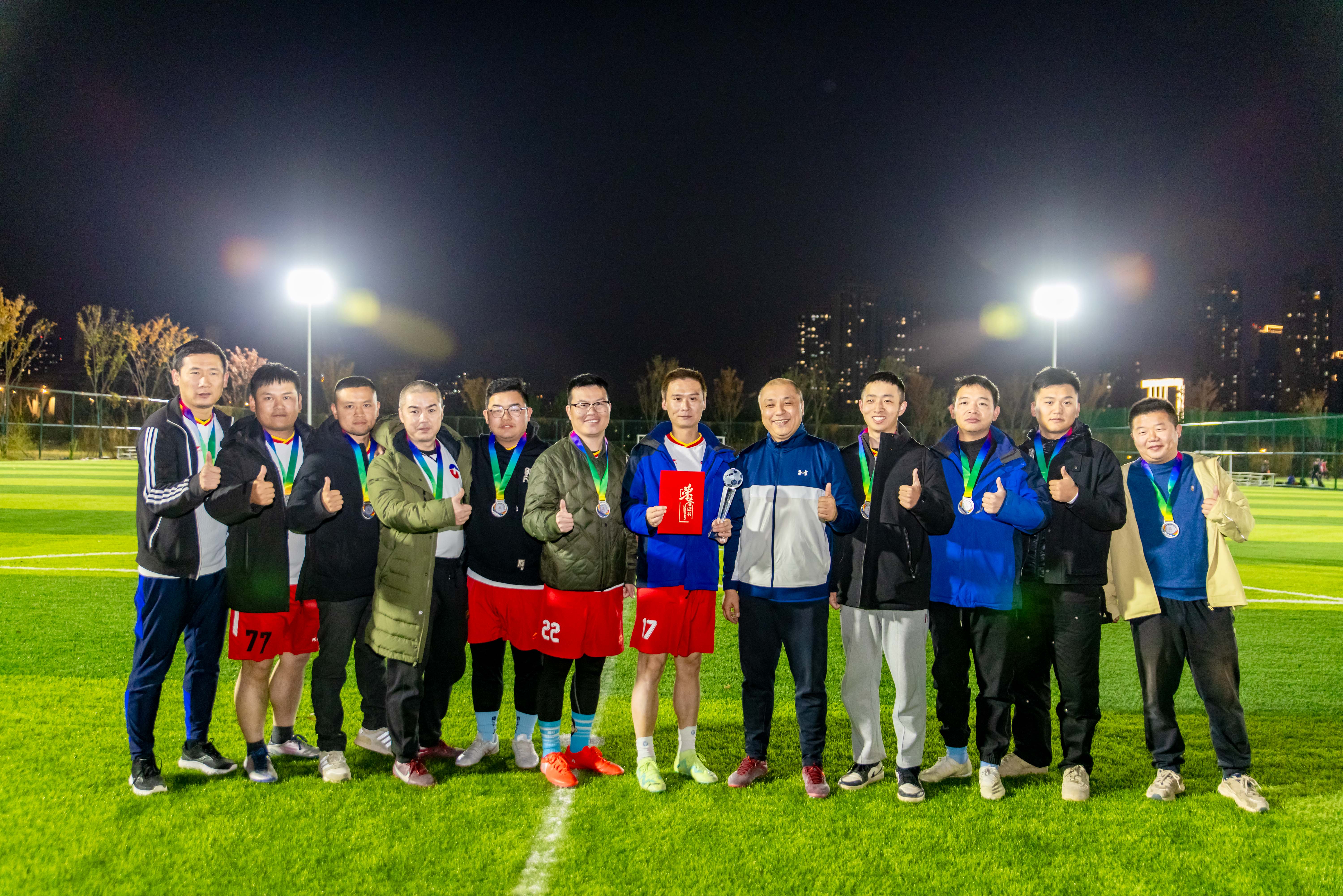 突破、對抗、吶喊、歡呼,綠茵場上的激情與熱愛將永不落幕。11月24日晚,第十六屆“漢陽市政杯”職工足球賽正式閉幕,天創建設足球隊歷經近一個月的過關斬將,喜獲亞軍。