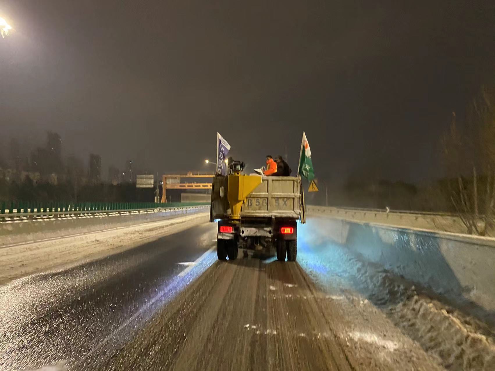 以雪為令,截至22日上午,文化長廊項目部共出動應急人員19人,撒布機3臺,鏟車2臺,撒布融雪劑15噸,保障洪山區白沙洲武金提立交橋到廟山立交橋(13km)道路通暢。